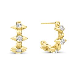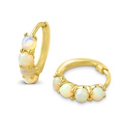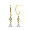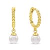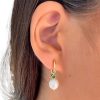 The Hoop earrings are made of Sterling Silver 925, plated with 18Karat Gold, and feature genuine freshwater pearls and a small emerald crystal.