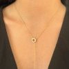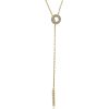 This long, lightweight necklace is designed to highlight the neckline and sun-kissed skin. The circle pendant set with clear crystals creates a refined focal point, while the drop chain ends in a sleek, vertical crystal detail.